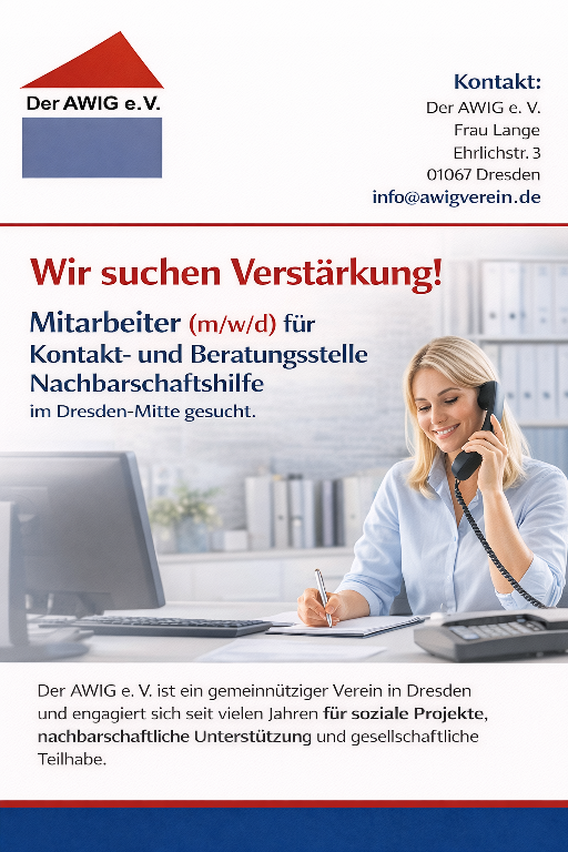 Wir freuen uns, dass sie die Website unseres gemeinnützigen Vereins AWIG e.V. – Alt werden in Gemeinschaft besuchen. Auf den folgenden Seiten wollen wir Ihnen unseren Verein näher vorstellen und vermitteln, welche konkreten Ziele wir mit unseren vielfältigen Aktivitäten in Dresden verfolgen.